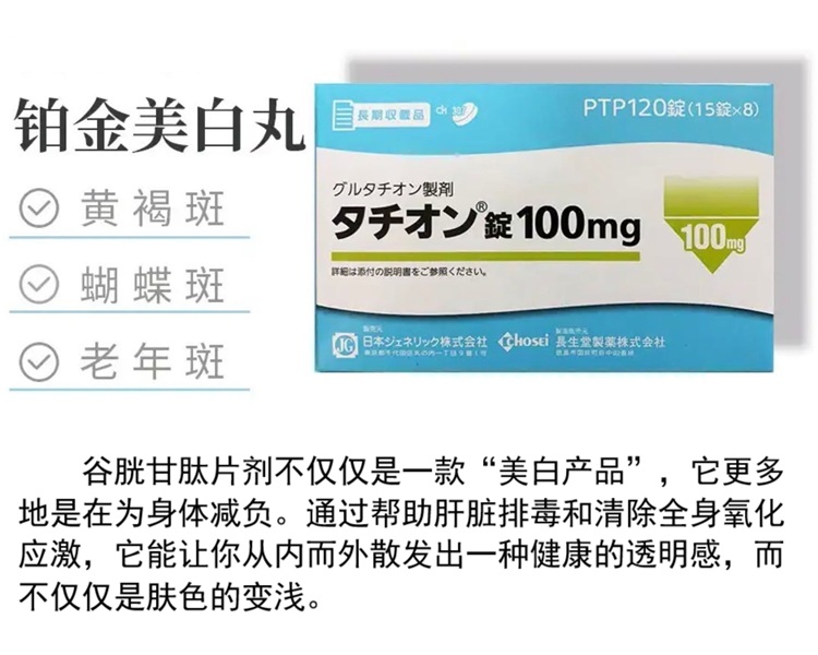 长生堂 铂金美白丸 谷胱甘肽片剂120粒/盒 抗酸化改善肝斑黄褐斑淡化黑色素 护肝提升免疫力